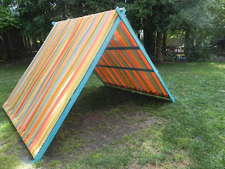 I have been determined to make the boys an A-frame tent. Let me start off by telling you that this was a huge pain in my a$$! I saw some pics online of some very similar to this, but the tutorials were kind of lacking. So, I winged it. I really thought I could do it on my own, but Lyndon ended up having to basically do the building. And, I finally found the right fabric after almost three weeks of searching. So, here is the tutorial if you are interested!